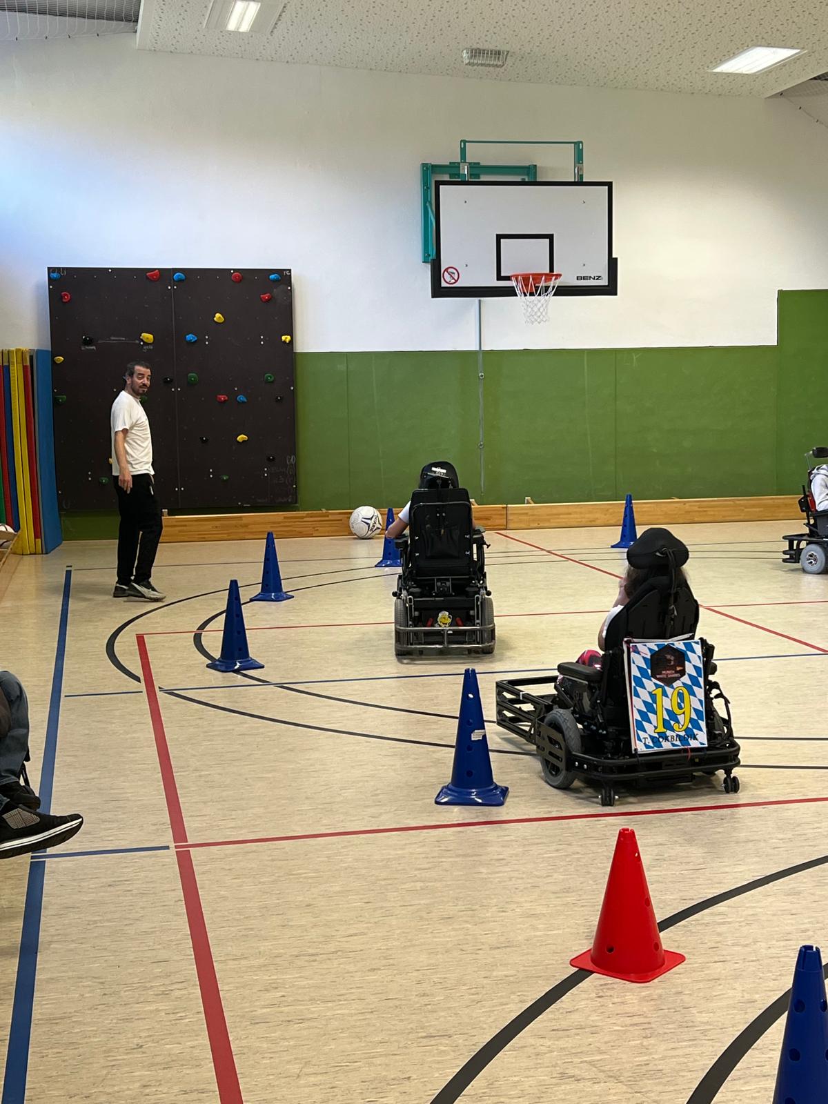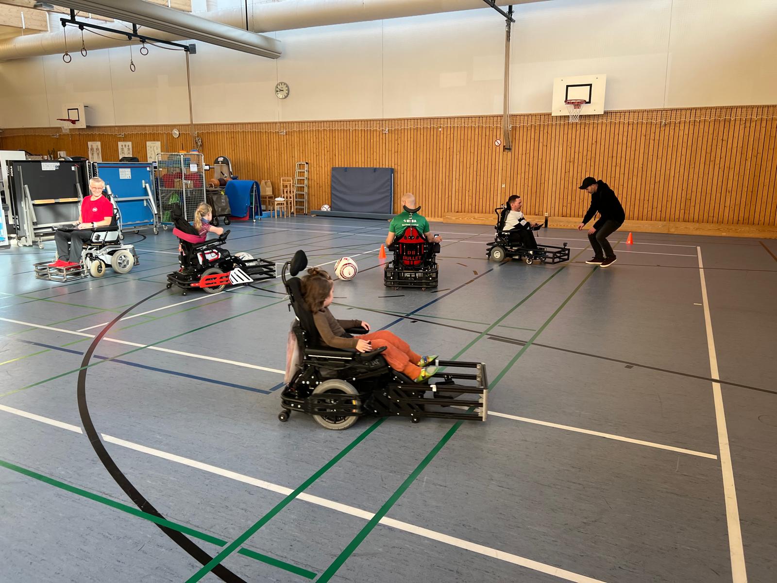Los ging es am 30. Oktober in der Carpe Diem Schule, eine Förderschule für körperbehinderte Menschen und Landesbildungszentrum in Sachsen-Anhalt. Im Rahmen eines Projekttages konnten sich die Schülerinnen und Schüler zum E-Rollstuhl Fußball Workshop anmelden, was auch zahlreich angenommen wurde. Die 15 Teilnehmenden konnten den ganzen Vormittag lang sich in einem der bereitgestellten Sportrollstühle ausprobieren. Ob Slalom Parcours, Passübungen oder Torschüsse, die Begeisterung bei den Kids, aber auch dem anwesenden Lehrpersonal um Sportlehrerin Andrea Wilke war riesig.
